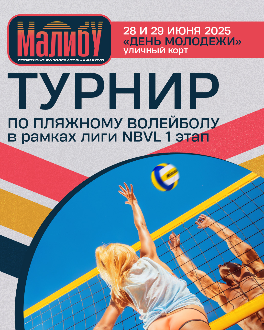 Мужские и Женские, команды встретятся в полноформатном пляжном турнире в рамках лиги NBVL 1 этап «День молодежи» в СРК «Малибу» на уличных кортах г.Сургут.