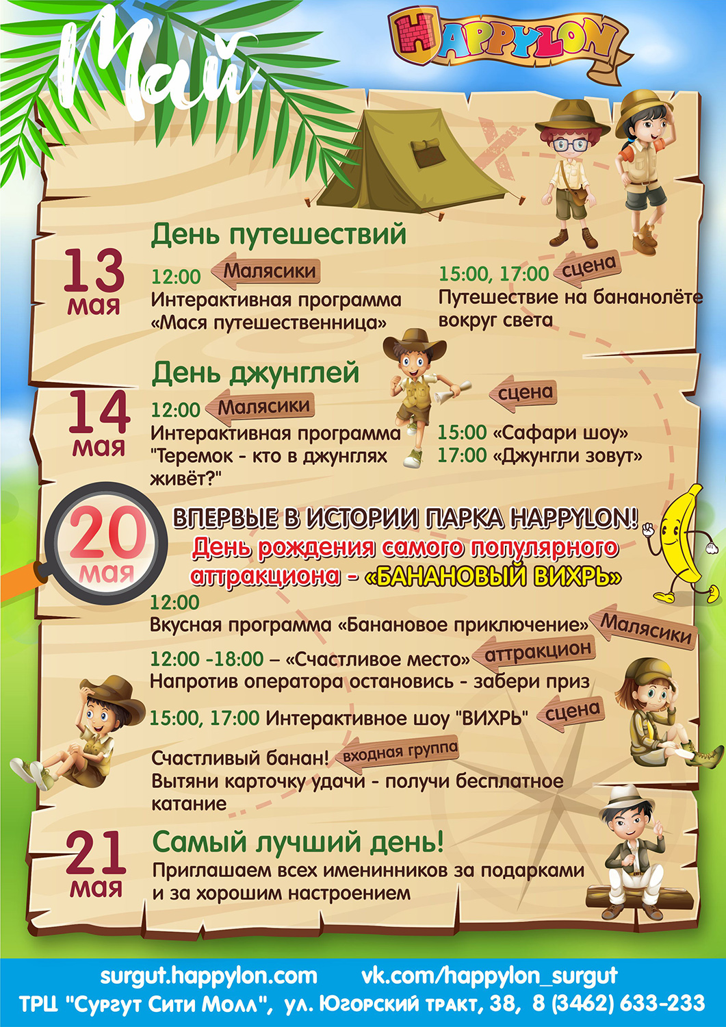 Афиша мероприятий на май от парка аттракционов HAPPYLON