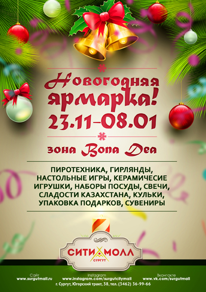 Режим работы ТРЦ «Сургут Сити Молл» в Новогодние праздники!