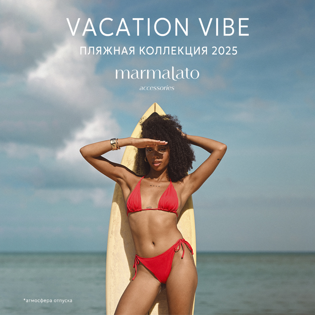 VACATION VIBE — пляжная коллекция Marmalato, созданная для тех, кто живет в ритме летних приключений. Вдохновленная морским бризом и солнечными днями, она объединяет стильные купальники и сумки, модные шляпы и панамы, а также яркие очки и комфортные сланцы.