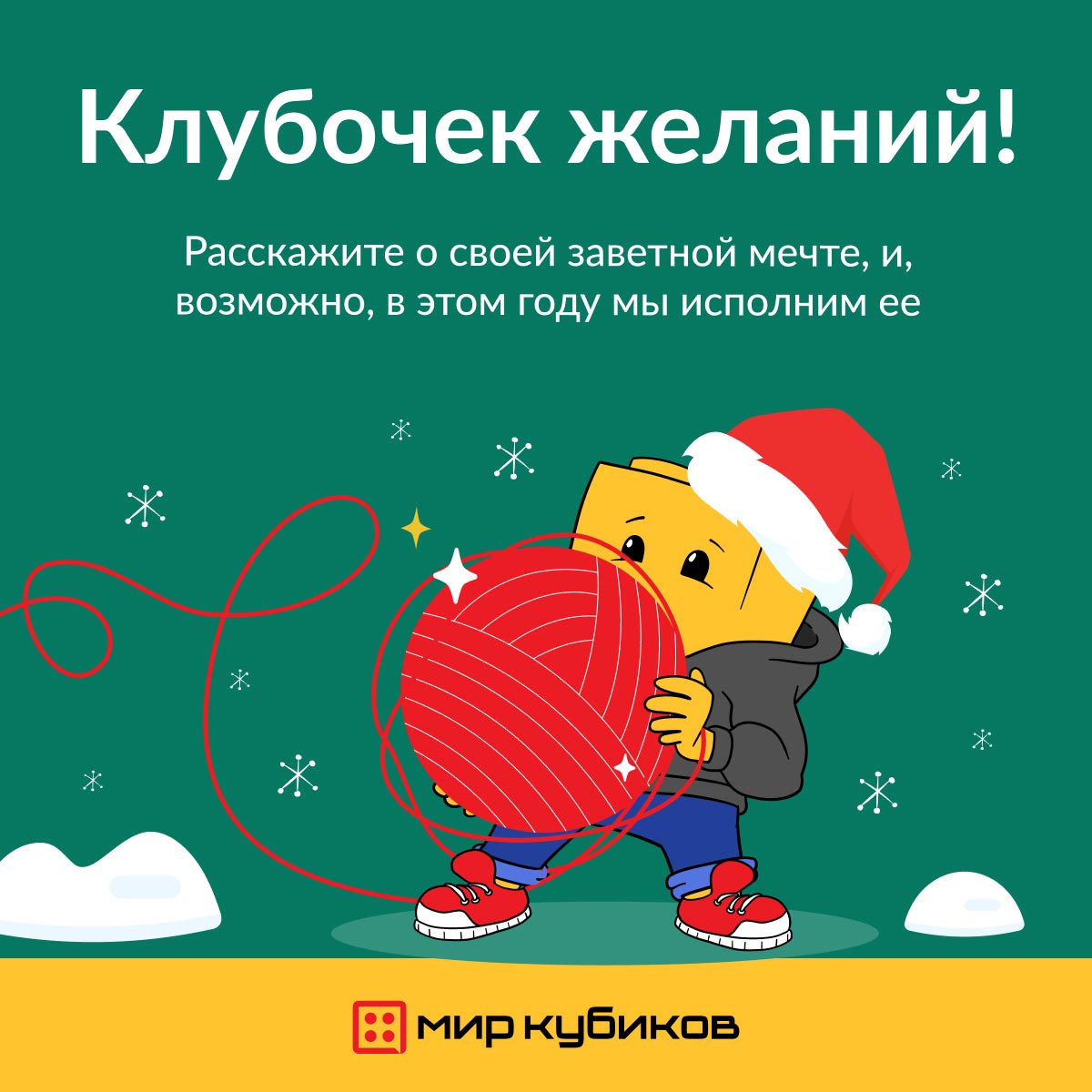 До 30 ноября 2023 года в магазине «Мир Кубиков» совершите покупку на сумму от 6000 рублей, получите промокод и участвуйте в конкурсе «Клубочек желаний». 10 победителей получат в качестве приза те конструкторы, о которых мечтали.