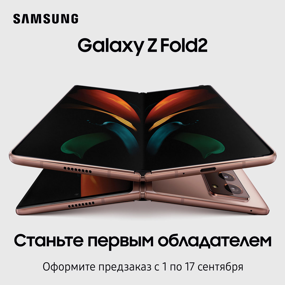 До 17 сентября 2020 года в фирменном магазине Samsung оформите предзаказ на Galaxy Z Fold2 и станьте первым обладателем смартфона с гибким экраном.